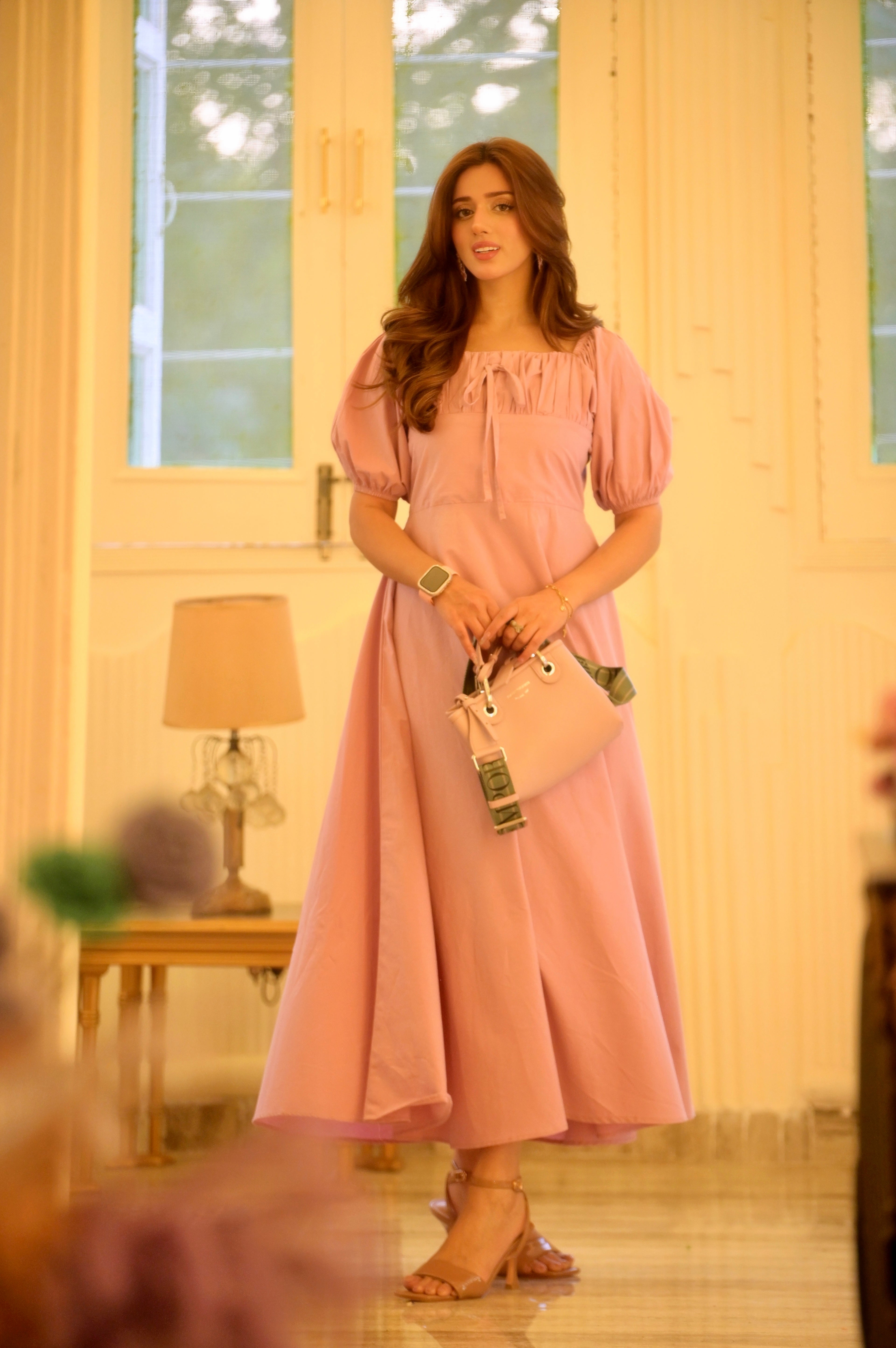 Step into your own piece of paradise. The Eden Rose midi combines a vintage-inspired square neckline with contemporary puff-sleeve detailing. Designed in a soft rose hue, this dress features whimsical puff sleeves and a delicate gathered bust. It’s a piece that feels like a walk through a heavenly garden—pure, airy, and undeniably feminine. This dress embodies the soft, radiant energy that Jannat Mirza brings to every look.