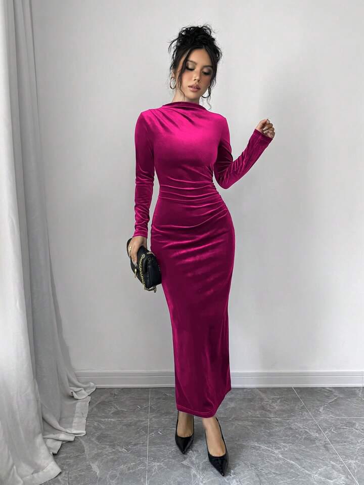 Make a bold entrance with this rich, statement-making dress that exudes timeless elegance. Its soft, plush texture and figure-flattering silhouette create a look that’s perfect for evening events, date nights, or any special occasion where you want to stand out.